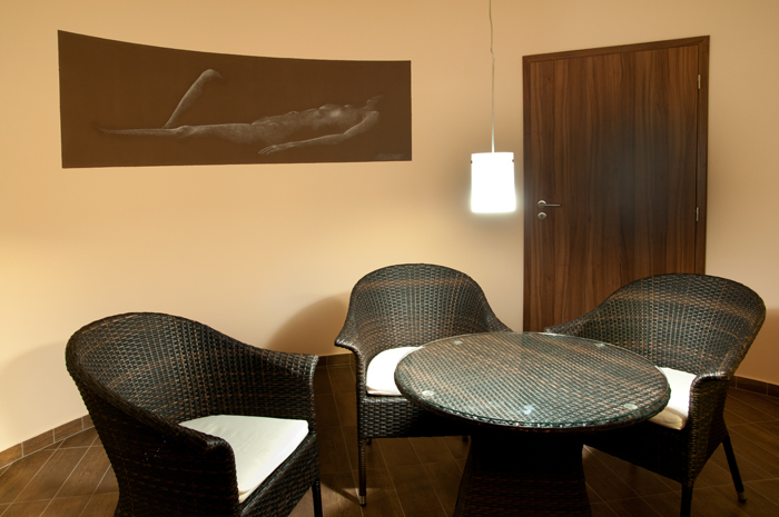 Akt - kresba bílou pastelkou v Saunovém ráji Holice
