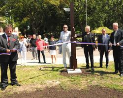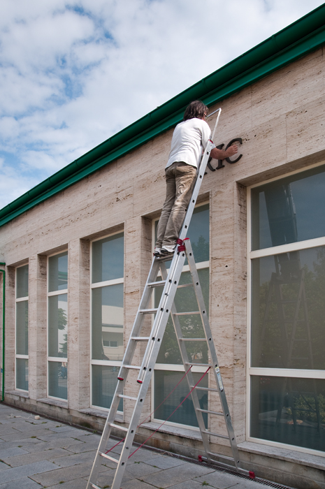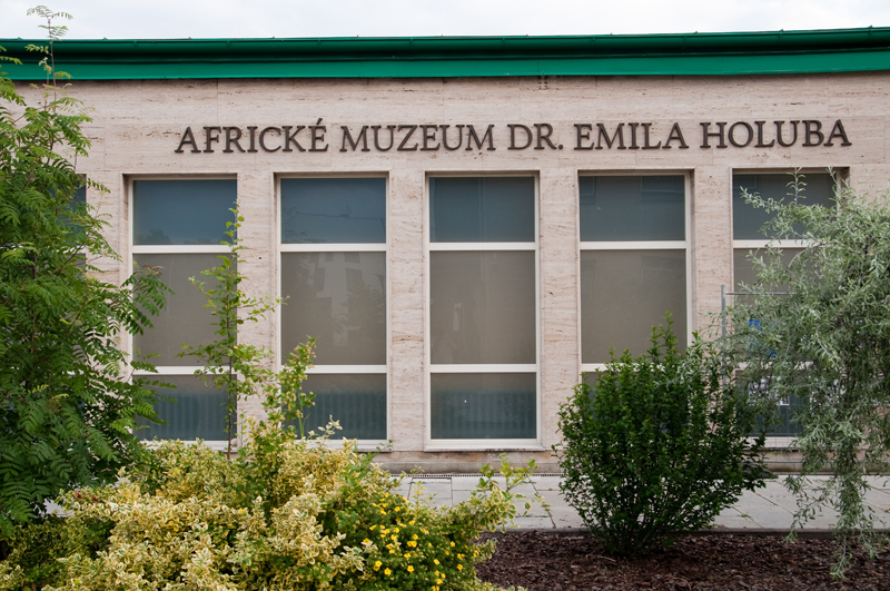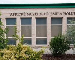 Umísťování nápisu na budovu Afrického muzea Dr. E. Holuba
